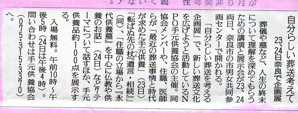 自分らしい葬送を考える企画展IN奈良 の紹介が